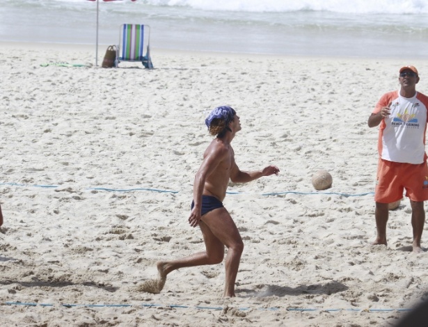 - 14.jan.2013 - O ator José Loreto, que viveu o Darkson em "Avenida Brasil", joga futevôlei na praia da Barra, na zona oeste do Rio Dilson Silva/AgNews Mais