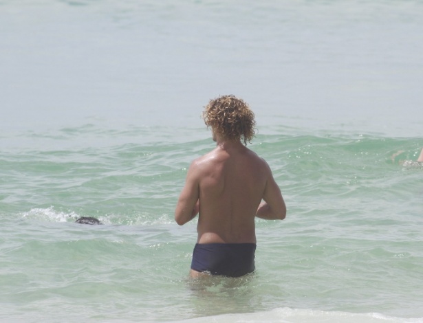 - 14.jan.2013 - José Loreto mergulha na praia da Barra, na zona oeste do Rio. Depois de viver o Darkson em "Avenida Brasil", o ator voltará à TV em "Flor do Caribe", próxima novela das seis da Globo Dilson Silva/AgNews Mais