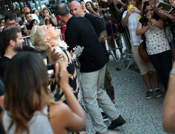 - 14.set.2013 - Acompanhada de um integrante de sua banda, Jessie J canta a música "Do It Like a Dude" para os fãs que aguardavam na saída do hotel Fasano, em Ipanema Wallace Barbosa/AgNews Mais