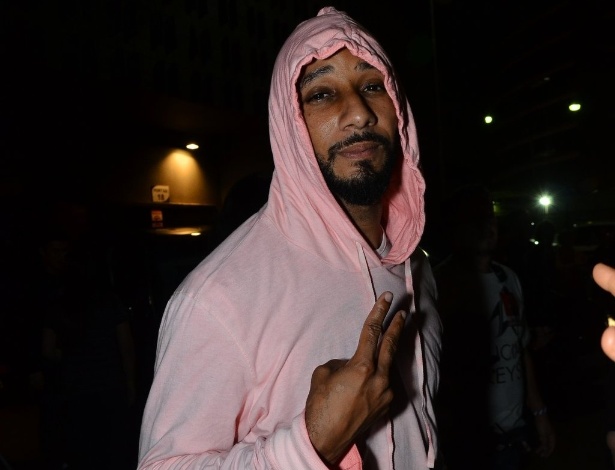 - O DJ e produto Swizz Beatz acena para fotógrafo enquanto aguarda a mulher, Alicia Keys, atender fãs em após show em São Paulo Caio Duran / AgNews Mais