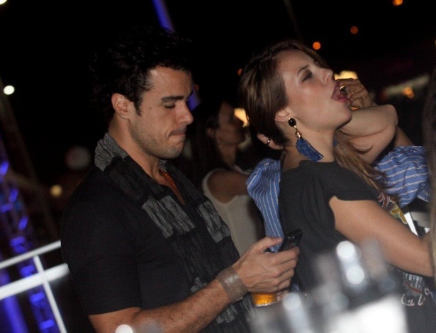- 19.set.2013 - A atriz Nathália Rodrigues e o marido Tchello, baixista da banda Detonautas, tomam uma cerveja durante o show do Sepultura Francisco Cepeda/AgNews Mais