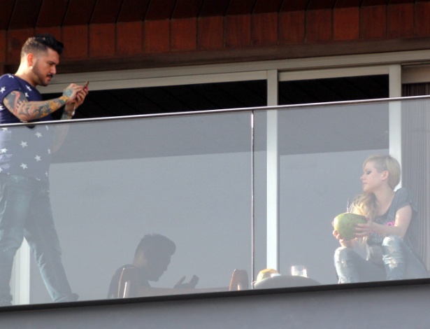 2.mai.2014 - Avril Lavigne na sacada do hotel onde está hospedada, no Arpoador, zona sul do Rio de Janeiro J.Humberto \ AgNews Mais