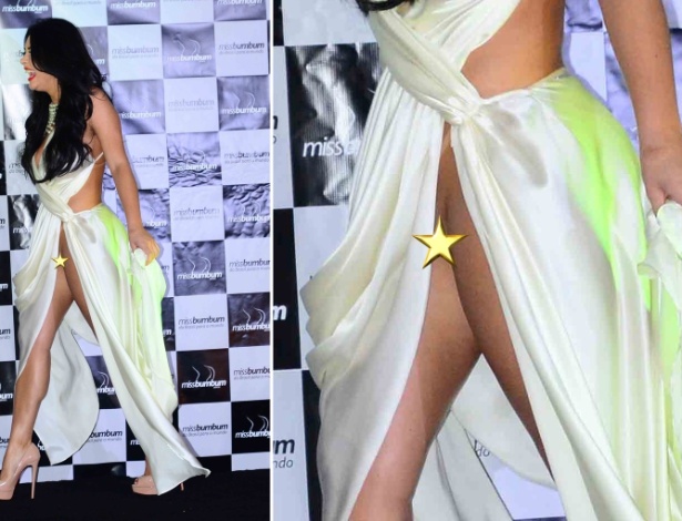 - 17.nov.2014 - Representante de Rondônia ao Miss Bumbum, a modelo Rebeka Francis ousou em seu traje de gala e dispensou calcinha para não marcar o vestido, mas mostrou demais durante desfile em um hotel no centro de São Paulo, nesta segunda-feira Léo Franco/AgNews Mais