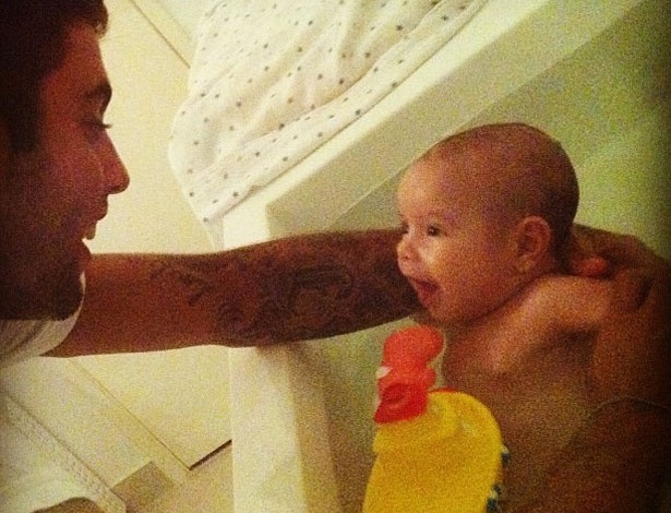Pedro Scooby publicou uma foto no Instagram em que aparece dando um banho em Dom, seu filho com a atriz Luana Piovani. "Mamãe registrou o banho de amor!", escreveu Reprodução/Instagram Mais
