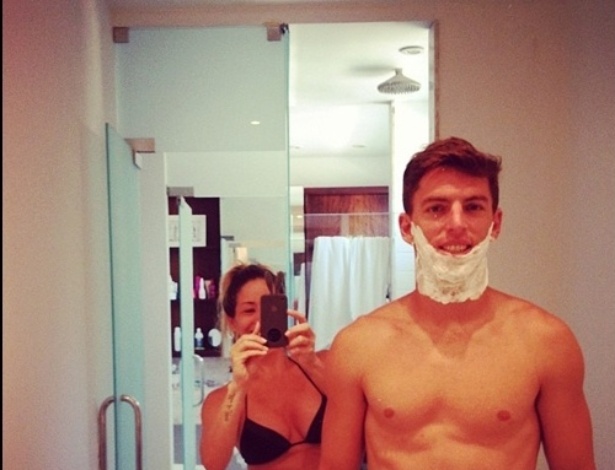 - 24.dez.2012 - Danielle Winits divulgou uma imagem do namorado, o jogador Amaury Nunes, com o rosto coberto de espuma de barbear imitando uma barba típica de Papai Noel Reprodução/Instagram Mais