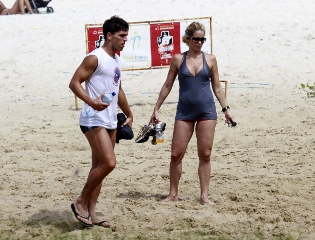 - 6.abr.2013 - A atriz Antônia Fontenelle, viúva do ator e diretor Marcos Paulo, exercita-se ao lado de seu personal trainer na orla da Barra, na zona oeste do Rio AgNews Mais