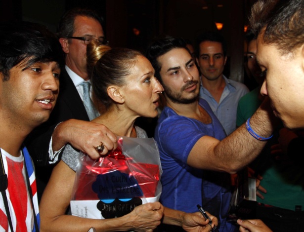 - 2.mai.2013 - Após desembarcar no Brasil, atriz Sarah Jessica Parker tira fotos com fãs no bairro dos Jardins, em São Paulo. Ela está acompanhada por seguranças e assessoras. A estrela da série "Sex and the City" está no Brasil para gravar um comercial de uma marca de sapatos, e deve permanecer no país por quatro dias. A estrela veio acompanhada de sua maquiadora e seu cabeleireiro Leo Franco/Agnews Mais