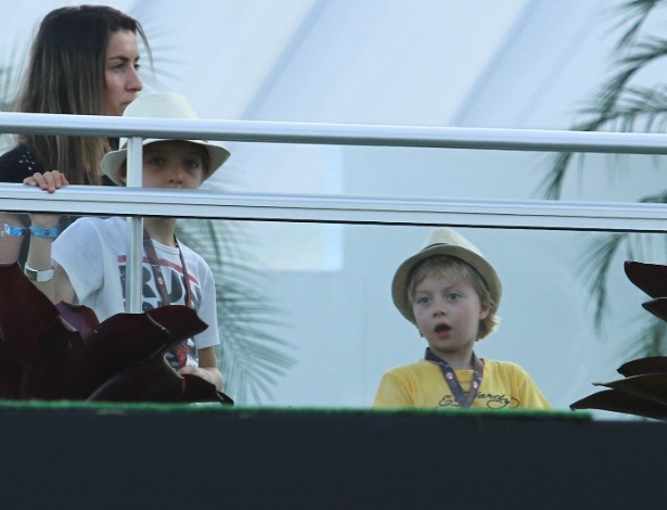 Joaquim e Benício, filhos de Luciano Huck e Angélica, foram as primeiras 'mini celebridades' que chegaram para os shows do dia 15, e foram direto para o cercadinho "super vip" do camarote. Thyago Andrade/ Foto Rio News Mais