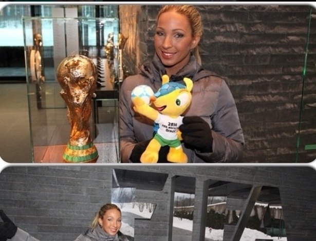 8.jul.2014 - Fernanda Souza posa em ponto de encontro de camarote da Copa do Mundo, em Belo Horizonte, e aposta em vitória do Brasil sobre a Alemanha, por 2 a 1 Divulgação/Sony Produtora 7 Mais