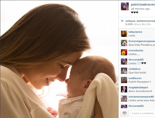 - Patricia Abravanel está plena no papel de mamãe. Em sua conta do Instagram, a apresentadora publicou uma foto que mostra seu aconchego com o filhinho, Pedro, nos braços. O bebê é fruto de seu relacionamento com o deputado federal Fábio Faria. Na legenda, ela colocou a imagem de três corações. Reprodução/Instagram patriciaabravanel Mais