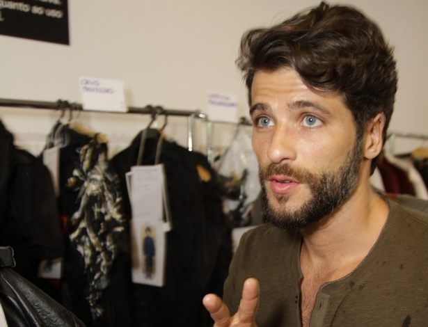 3.nov.2014 - Bruno Gagliasso no backstage da grife Cavalera na primeira noite da SPFW Marcelo Brammer/AgNews Mais