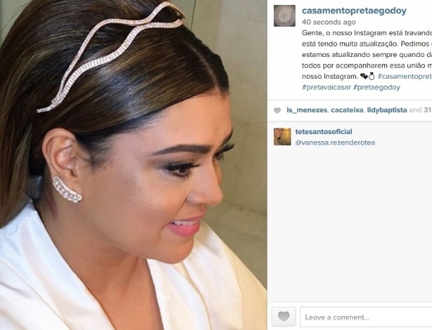 - 11.mai.2015 - O cantor Thiaguinho usa o seu Instagram para homenagear os noivos Preta Gil e Rodrigo Godoy, que se casam na noite desta terça no Rio de Janeiro. Ele explica que não poderá estar presente na celebração por conta da gravação do programa "Música Ao Vivo", do canal Multishow. "Dia feliz! Dia de casamento! Amo esses dois... E me sinto honrado em ver desde o início essa relação que se oficializa hoje.. Deus abençoe vocês! Não estarei no altar (apresento o Musica Boa no mesmo horário), mas minha esposa e minha mãe representarão nossa família e eu sou padrinho mesmo assim!!!", escreveu o pagodeiro Reprodução/Instagram/thbarbosa Mais