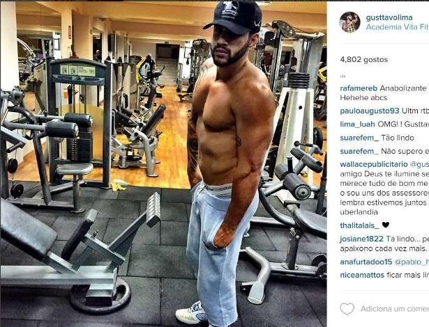 - 16.set.2015 - Na madrugada desta quinta-feira, Gusttavo Lima publicou uma foto no Instagram em que aparece sem camisa em uma academia. "Treino inteligente na madrugada! Mais um pra conta!!! 02h30", escreveu o cantor na legenda da imagem. No fim do mês de agosto, o sertanejo anunciou o término do seu noivado com Andressa Suita. O casal estava junto há mais três anos e de casamento marcado para 2016 Reprodução /Instagram /gusttavolima Mais