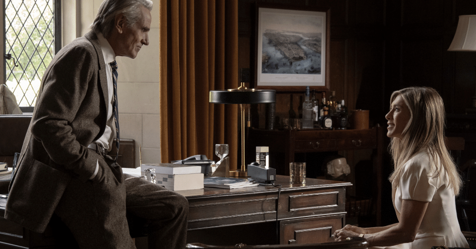 - Jeremy Irons e Jennifer Aniston em cena de "The Morning Show," na Apple TV+. Divulgação / AppleTV+ Mais
