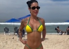 Namorada de Belo, Rayane Figliuzzi curte praia com biquíni verde e amarelo -